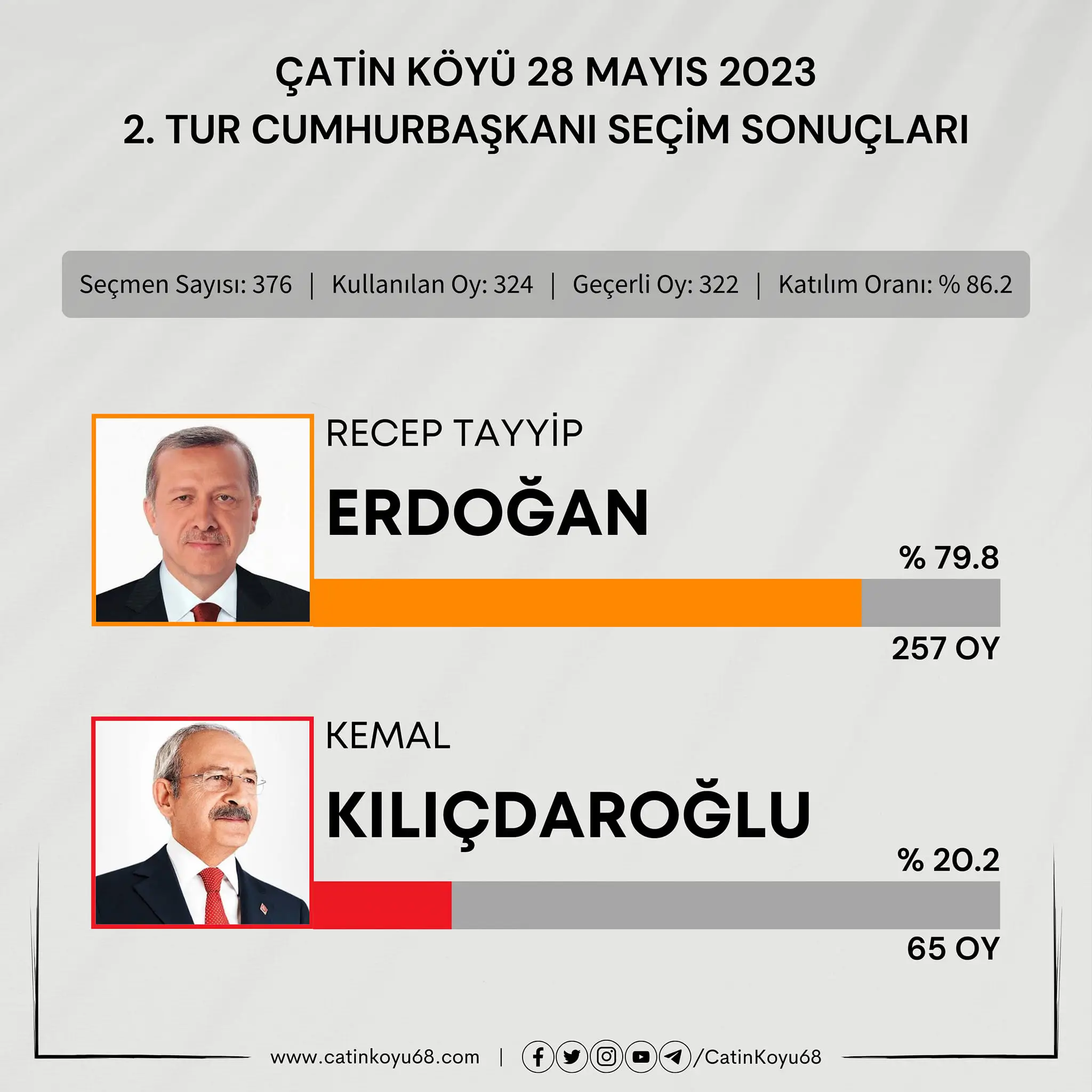 14 Mayıs 2023 tarihinde yapılmış olan cumhurbaşkanı seçiminde adaylardan hiçbirisi oyların %50’sinden fazlasını alamadığı için seçim ikinci tura kalmış olup en çok oy alan iki aday (Recep Tayyip Erdoğan ve Kemal Kılıçdaroğlu) arasında tekrar seçim olmuştur.